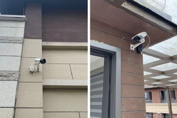 我們在負二樓車庫的位置安裝了1臺攝像機,一樓前后花園共安裝了4臺攝像機,各方位無死角,頂樓也安裝了1臺攝像機。